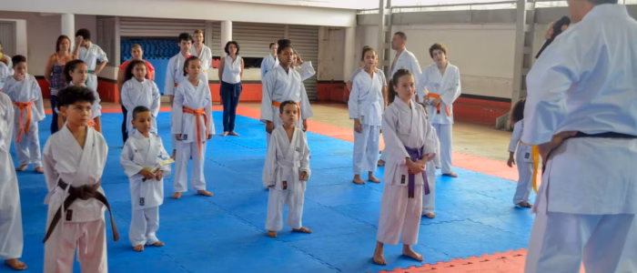 OBJETO: DESENVOLVIMENTO DE ATIVIDADES NA VIRADA ESPORTIVA 2018, VISANDO Á EXECUÇÃO DA MODALIDADE KARATE COM ATIVIDADES PARTICIPATIVAS EM FORMA DE AULAS ABERTAS PARA TODOS OS PRESENTES, E APRESENTAÇÕES DE KIHON, KATA E SHIAI. NAS ATIVIDADES COMPLEMENTARES HOUVE PALESTRA SOBRE BUDO E FILOSOFIA DO KARATE.